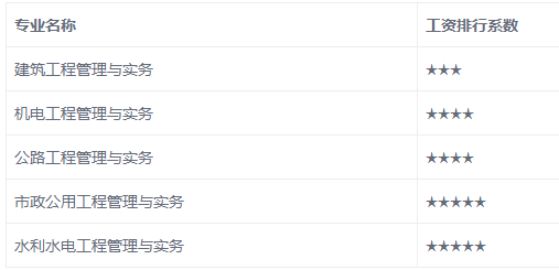 建筑工程专业考试难度较低,考试人数多,相应的工作收入也较低,市政和水利考试难度相对较高,相应的工资收入也是比较可观的。