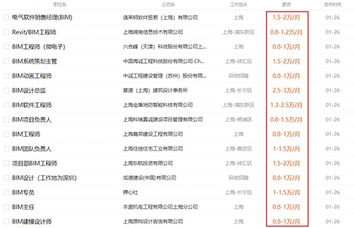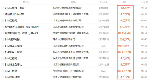 以上为北京、上海、成都三个城市的招聘情况,各位关注BIM的从业人员也可以自行到招聘网站上搜索关于BIM的当地薪资水平,整体说来,月薪8000以上是正常的情况,月入过万那也是常理之中,可见,BIM技术在接下来的几年必将大火,毕竟没有人不希望工资可以更高一点。