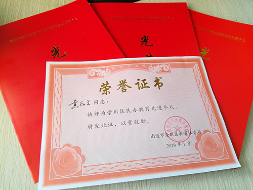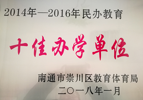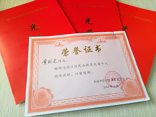 近日,铁军建工专修学荣获“十佳办学单位”,这是铁军连续7年荣获“十佳办学单位”荣誉称号;校长黄路建和副校长黄红兰被评为“崇川区民办教育先进个人”。