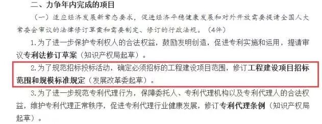 国务院办公厅在2017年立法工作计划中明确,将由国家发展改革委负责进行修订《工程建设项目招标范围和规模标准》。修订的主要内容是,确定必须招标的工程建设项目范围。