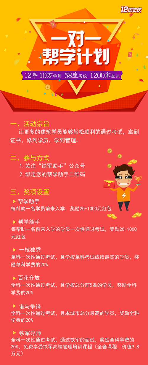 关注“铁军建工专修学校”公众号,在我的学习——学习应用中,扫码关注“铁军助手”公众号,绑定您的帮学助手二维码